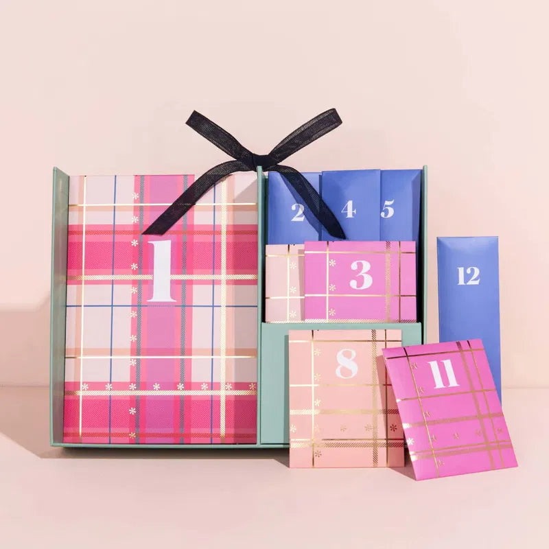 1. Medium Notepad 2. Peacock Dual-Tip Marker 3. Oval Sticky Notes 4. Midnight Gel Pen 5. Lilac Mini Highlighter 6. Sticky Notes Set 7. Champagne Metallic Marker 8. Mini Card and Envelope Set 9. Thin Washi Tape Duo 10. Berry Dual-Tip Stamp Marker 11. Guided Functional Sticky Notes 12. Blush Fineliner