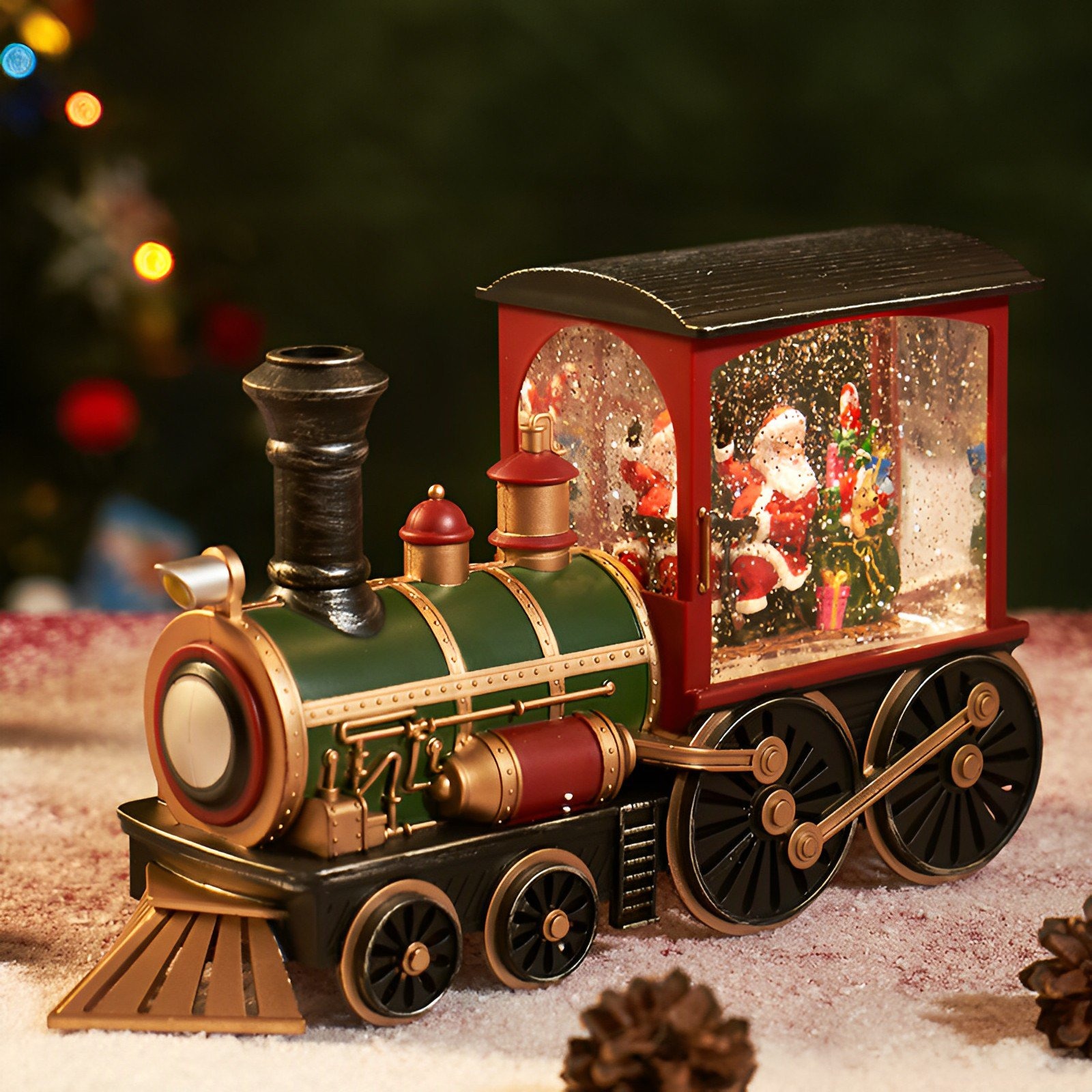 Christmas Music and Lights: This Christmas train lantern features seven classic Christmas songs, including “Jingle Bells” and “Silent Night”, which play in a loop. The white sequins rotate as the lights flash, creating a festive and magical atmosphere.