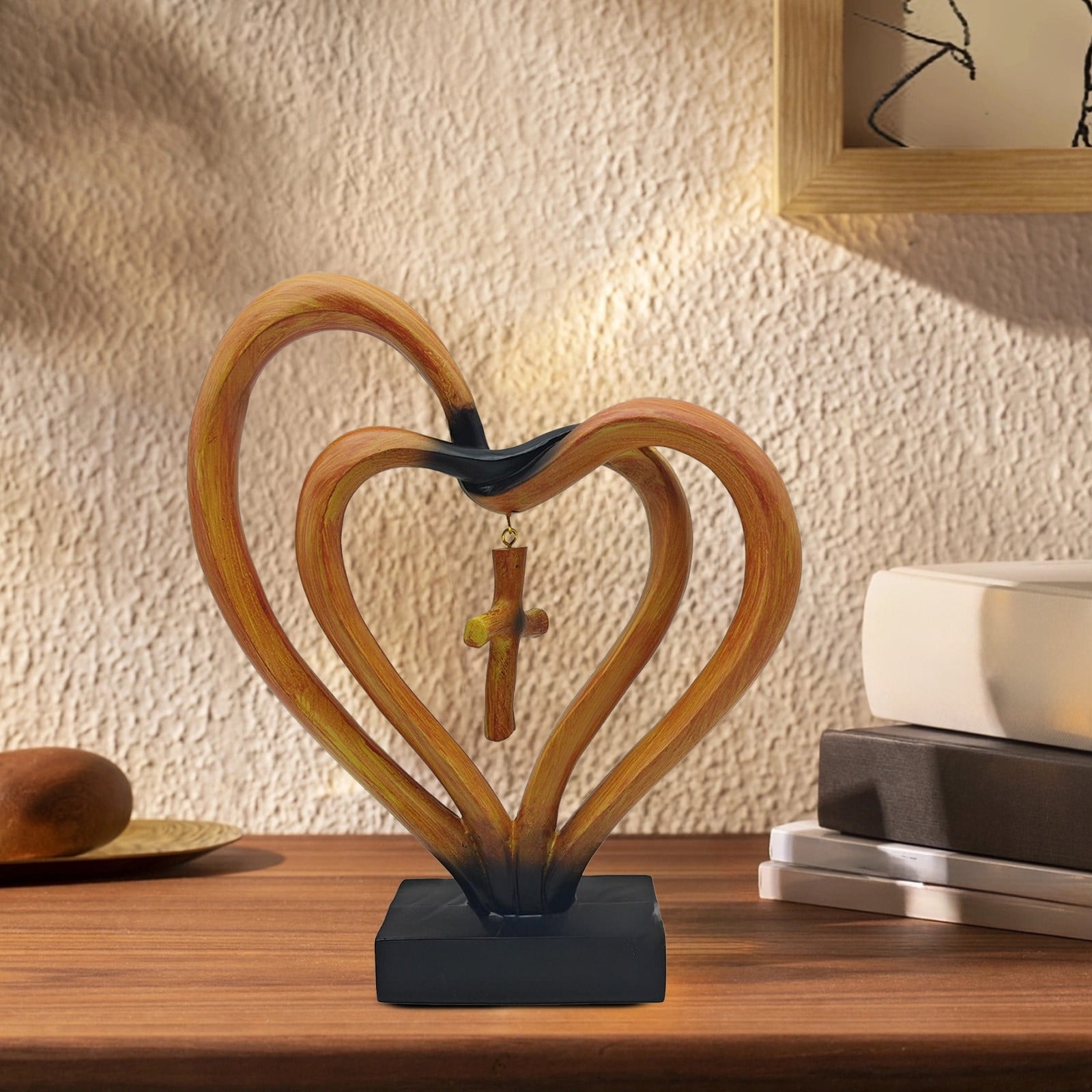 Love Desktop Ornaments Two Hearts Office Desktop Decoration Home Decoration Valentine's Day Gift Resin Crafts Ornaments Features: Color: Brown Material: Resin Product size: 24x21x5.5cm/9.45x8.27x2.17in Packing size: 29.5x24.5x9.5cm/11.61x9.65x3.74in Net weight: 500g/1.1lb Gross weight: 582g/1.28lb Product Description: 【Romantic Valentine's Day Symbols】This ornament is specially designed for Valentine's Day, two connected heart design, vivids interpretation of the love of the mingled and eternal, is themost representative of the Valentine's Day gift to their lovedones, so that your love in this special holiday can be expressed affectionately. 【Exquisite Material Craftsmanship】Made of excellent resin material, after fine carving and polishing, the face is sleek and delicate, full of texture. The resin material is not just strong and durables, but also can perfectly present the design details to ensure that every line is clear and sleek, showing the elegant taste. 【Unique two color options】Two classic color schemes are available: brown and s-ilver. The brown color exudes calmness and warmth, just like the depths and mellowness of love; while the s-ilver color shines with fashion and nobility, just like the sparkles and holiness of love. You can choose according to your lover's preference or home decoration style. 【Religious symbolism】A crosss is cleverly hung inside, adding a religious cultural connotation to this love ornament. It symbolizes love and salvation, so that this gift not just carries love, but also contains prayerss and wishes for a betters lifes, injecting a deepers spiritual support for love. 【Fine Home Decoration】Whether it is placed on the coffee table in the living room as the visual focus of the living room, or placed on the bedside table in the bedroom to accompany you through the cozy bedtime, it can be perfectly integrated with the home environment, enhance the romantic mood and artistics style of the entire space, and alway remind you of the sweet love between you and your lover. Package Content: 1x Resin decorations